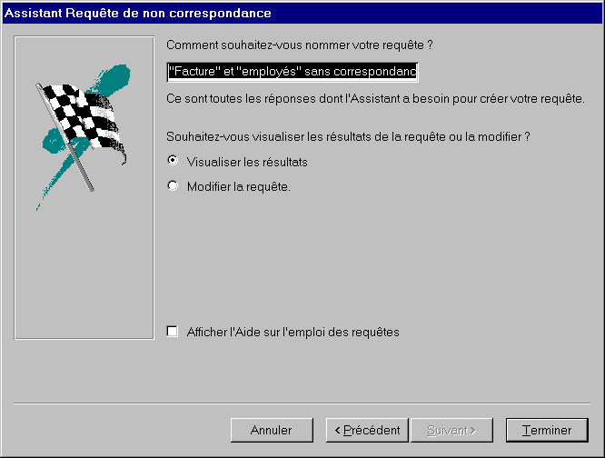 To end, Access asks you for the name to look to the query. For the moment, don't change the name of the query.