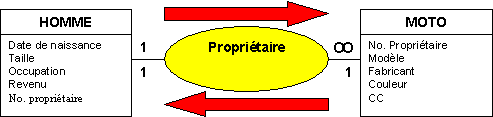 Ex: A person can possess several motorcycles. A motorcycle can be possessed