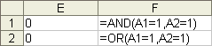 With these numbers, you should see the "FALSE" in cells B1 and B2. The numbers don't answer the conditions in either formula. For the = And() function to work, the cells A1 and A2 must be equal to 1, the necessary conditions for that function to be true are not yet met. It's the same situation for the =Or() function.