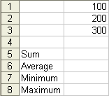 In the B7 cell, write the following formula: =min( B1:B3 ).