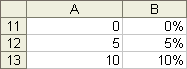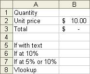 Using the =If function, the formula may look like this: =If(B1>=10, b3*0.1, if (B1>=5, b3*0.05, 0)). This formula is simple because it has only three possibilities (10 and above, between 5 and 10 and between 0 and 5). The formula becomes more difficult to create when you add more and more possibilities. The function =Vlookup or =Hlookup can help in this situation.