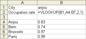 To help you to understand, here is another exercise with a grid for school grades. This exercise consists at showing the appropriate letter for a given note in the B2 cell according to the grade located in the B1 cell.